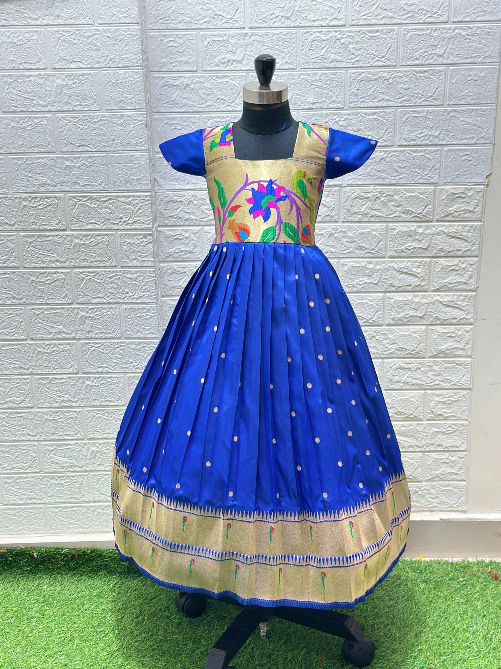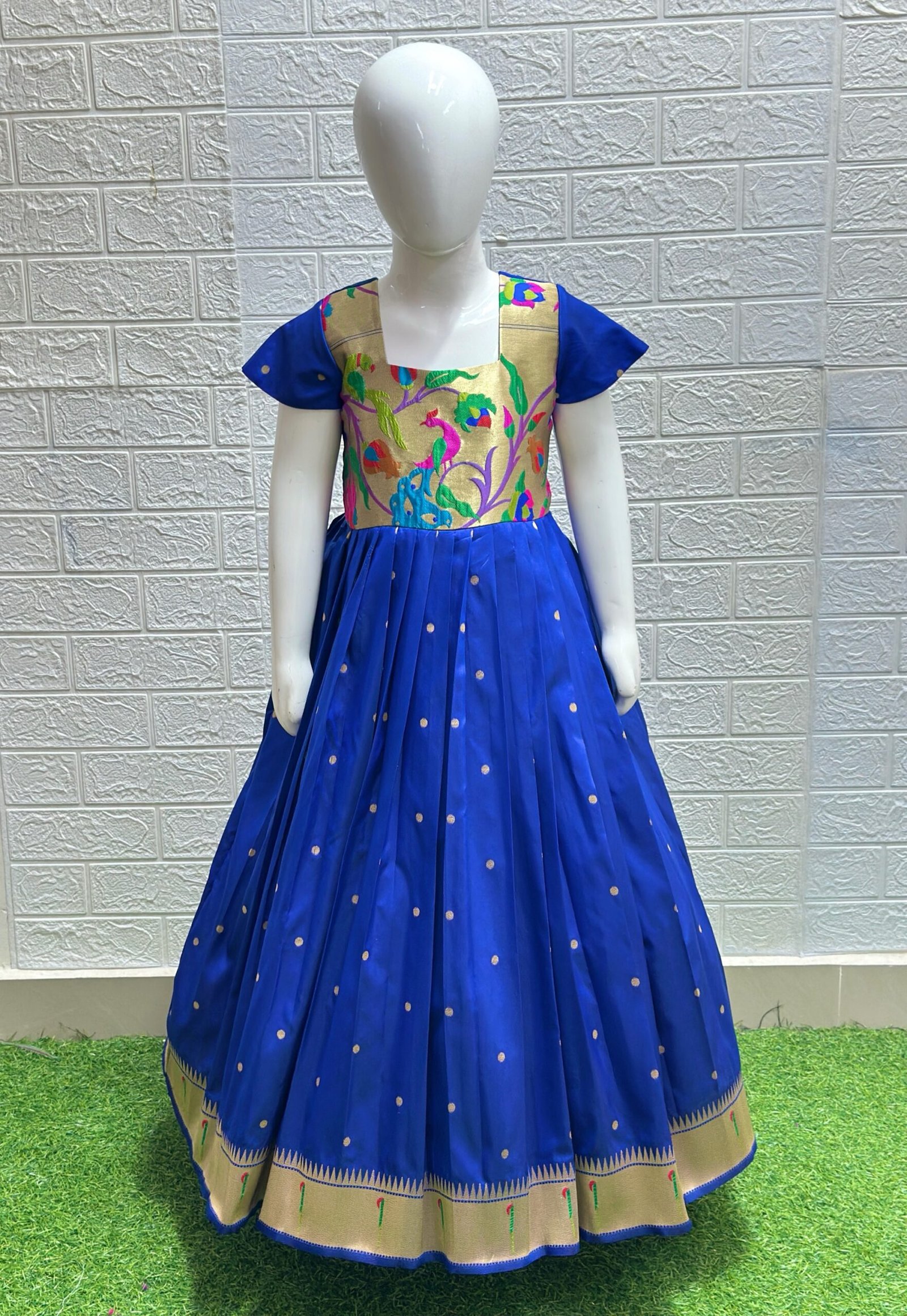 Royal Blue Semi Paithani Gown for Girls 👗✨