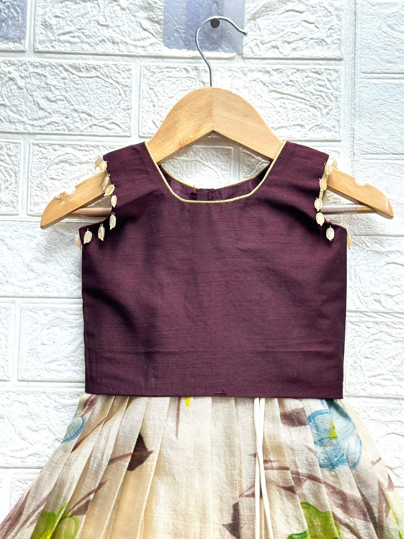 👚 Blouse: Contrasting raw silk blouse, detailed with delicate cream pearls along the armhole — simple, classy & absolutely charming 🌼