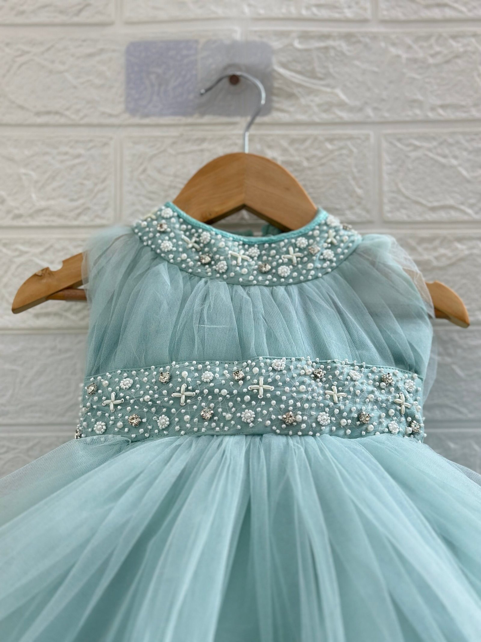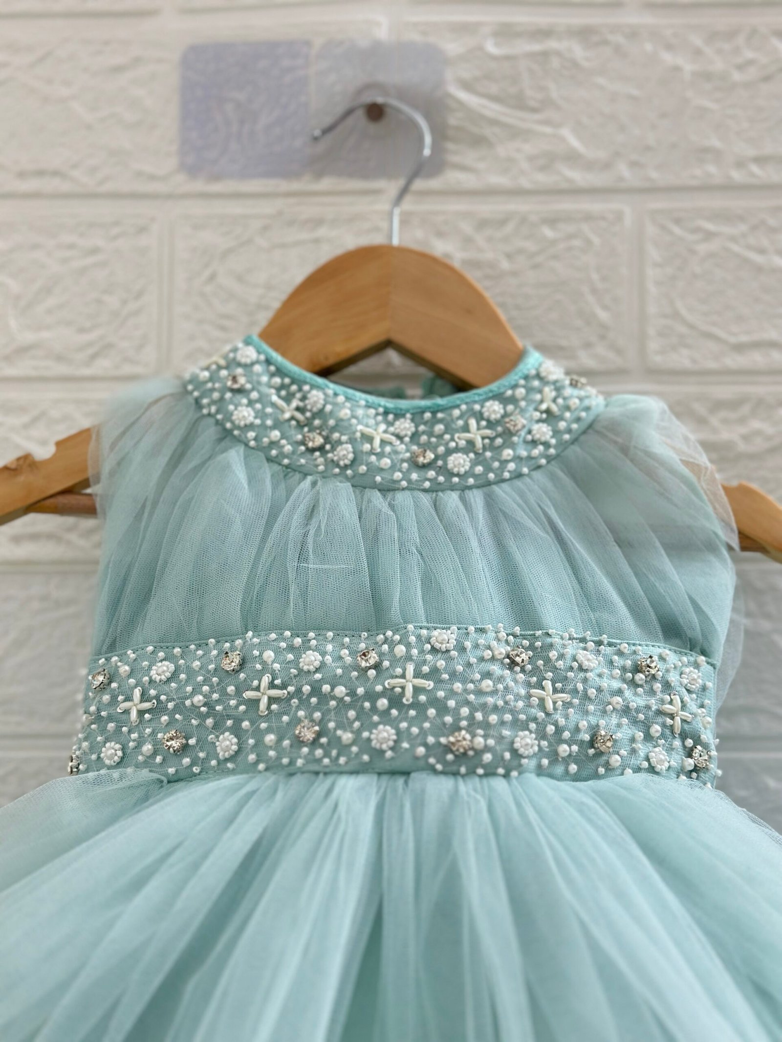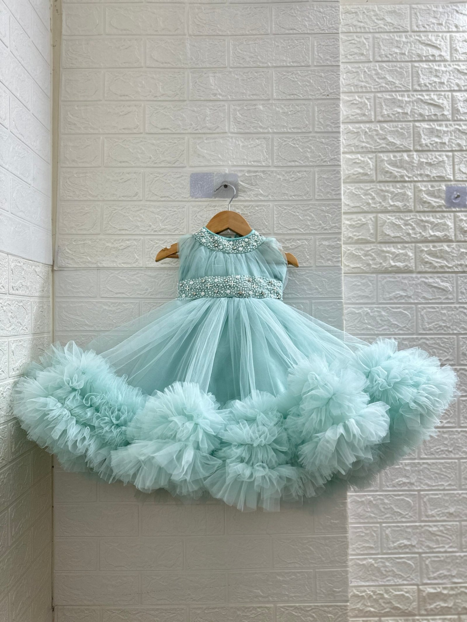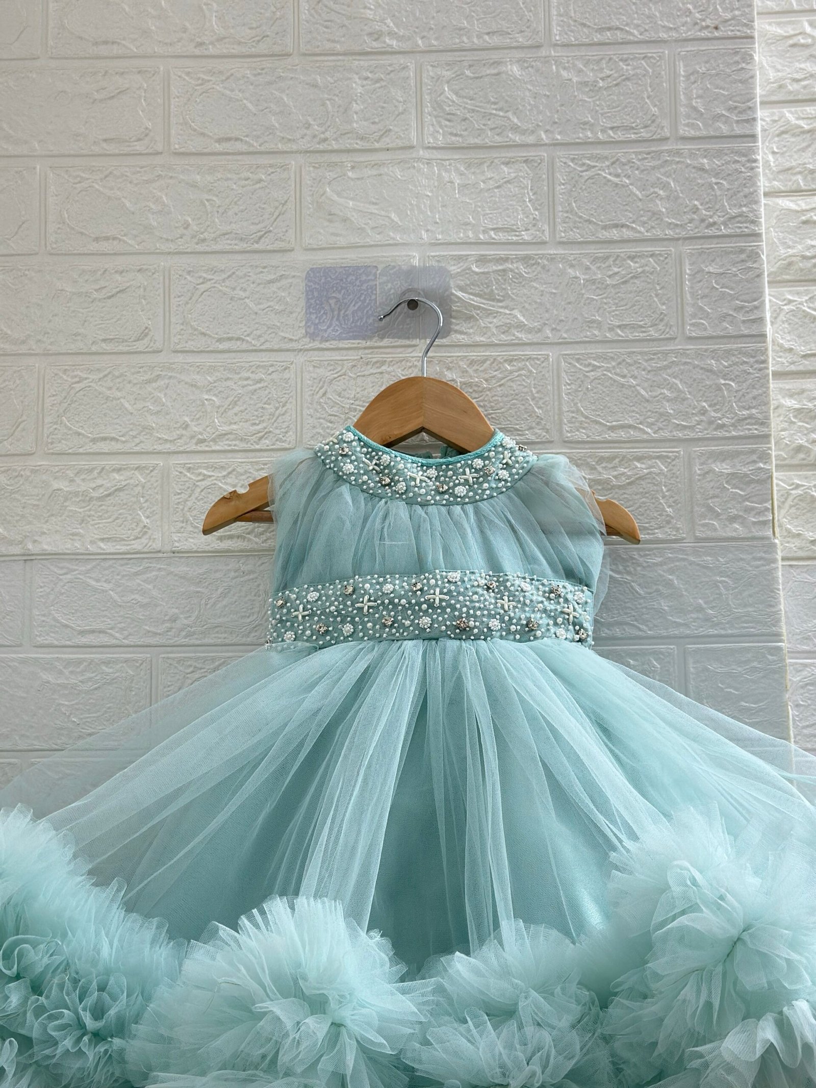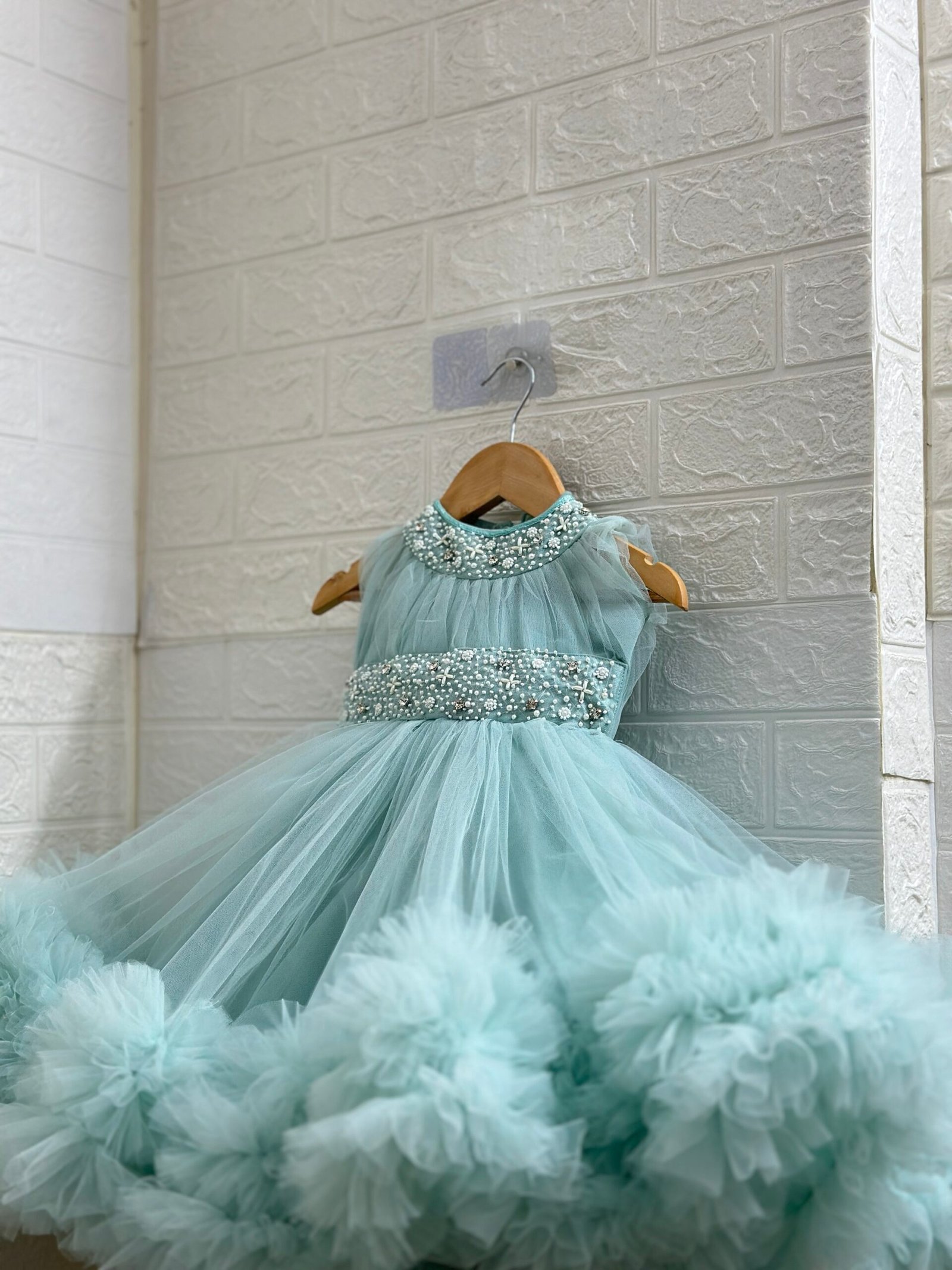💫 A dreamy Mint Blue frock that blends elegance & cuteness – turning every celebration into a memory to cherish forever 💕