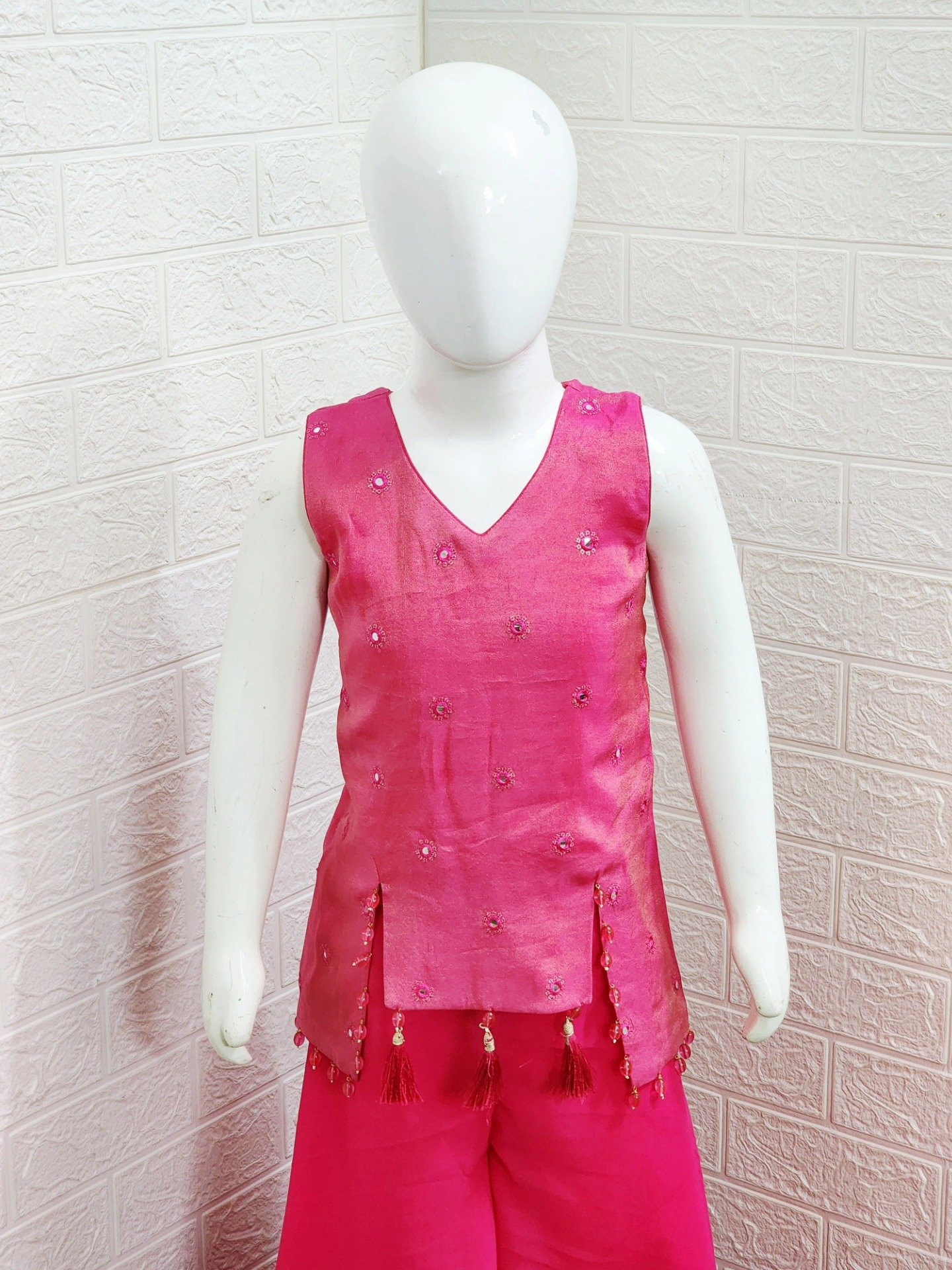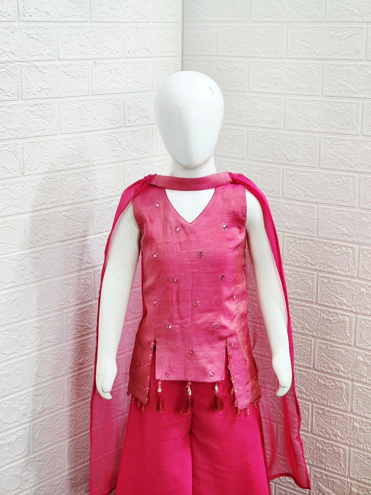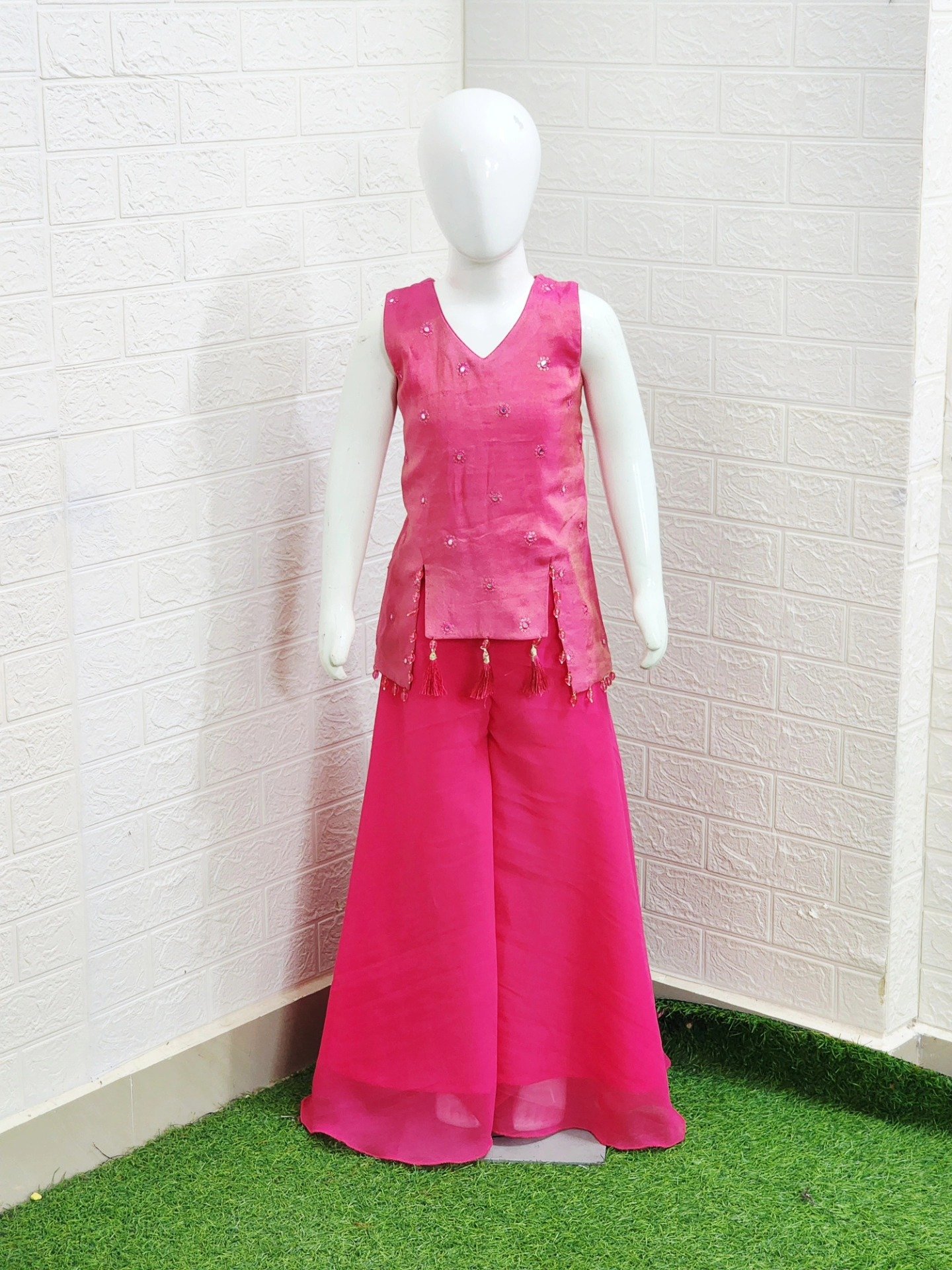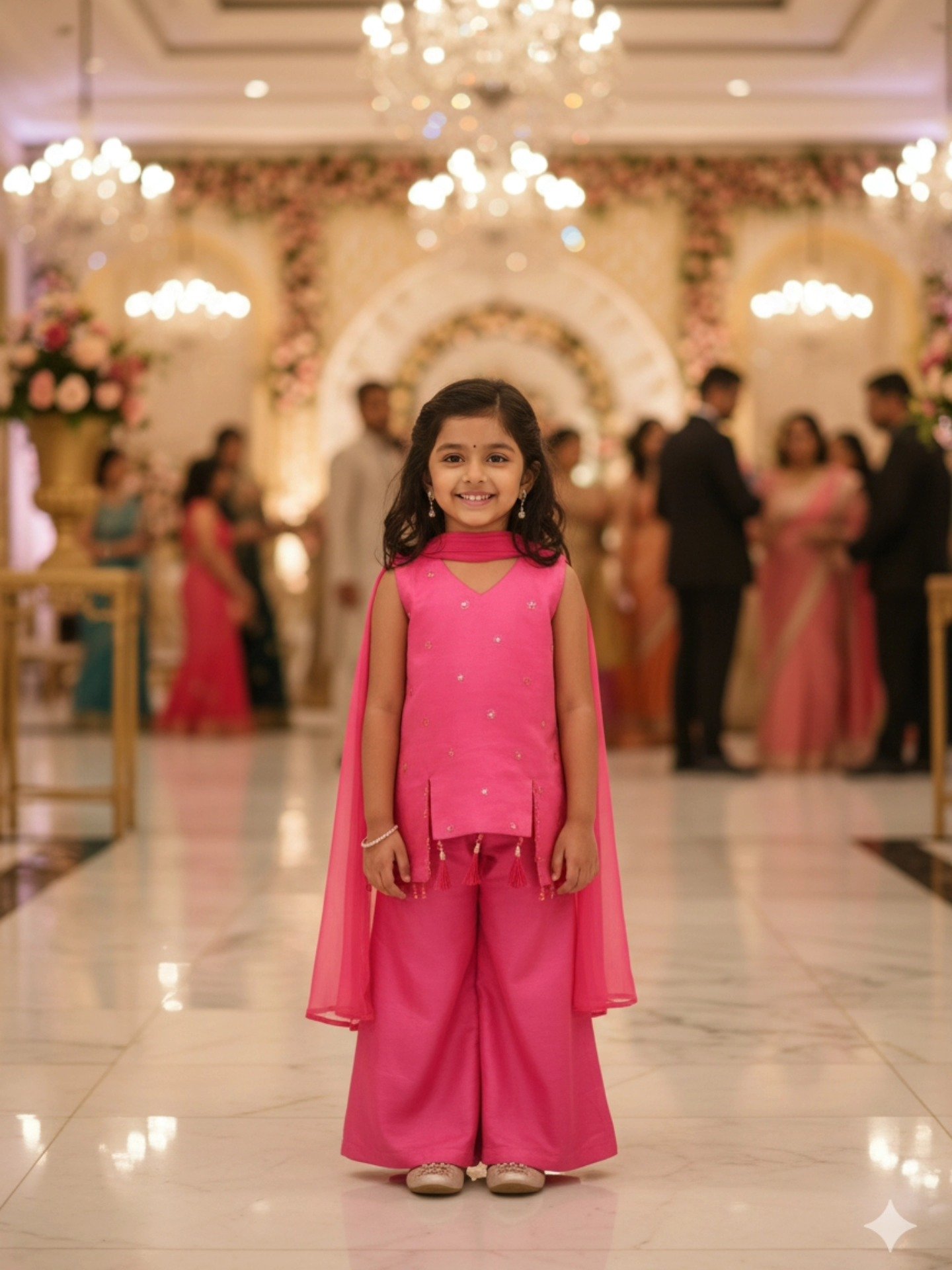 Dazzle in effortless elegance with this stunning mirrors georgette kurti set, designed to make every moment shine. The flowy georgette kurti is beautifully adorned with intricate mirrors that catches the light with every move, adding a touch of festive sparkle. Paired with a gracefully flared umbrella palazzo, this ensemble creates a dreamy silhouette that blends comfort with glamour. Perfect for festive celebrations, parties, and special occasions—this outfit is all about twirl-worthy charm and radiant style.