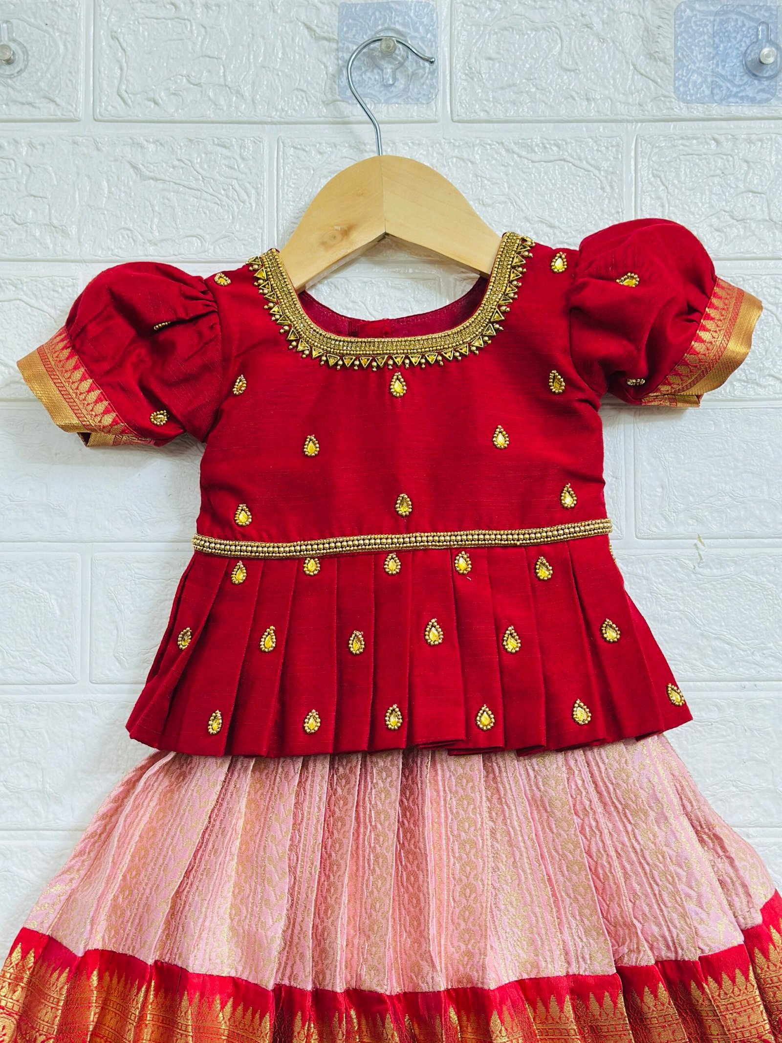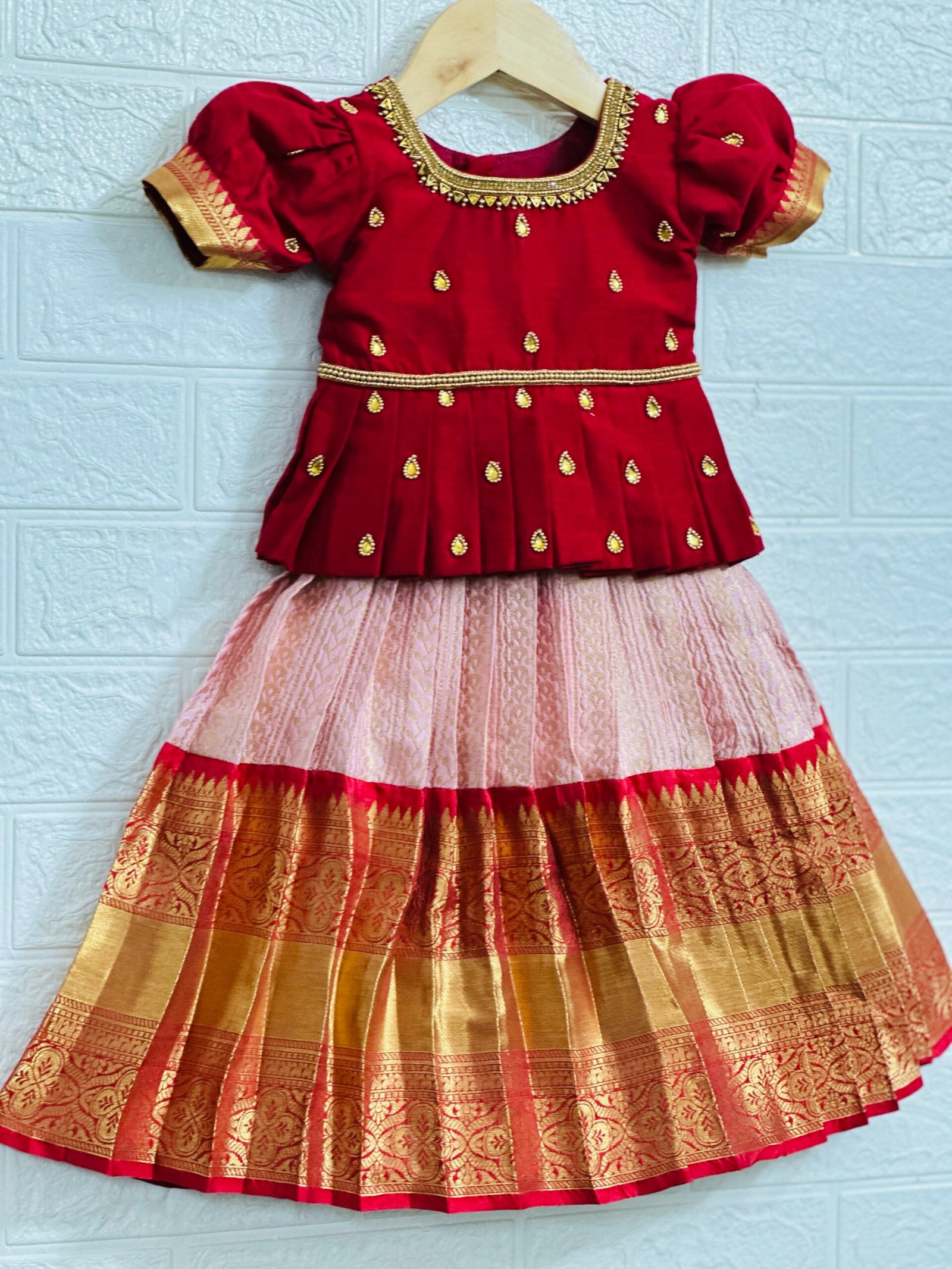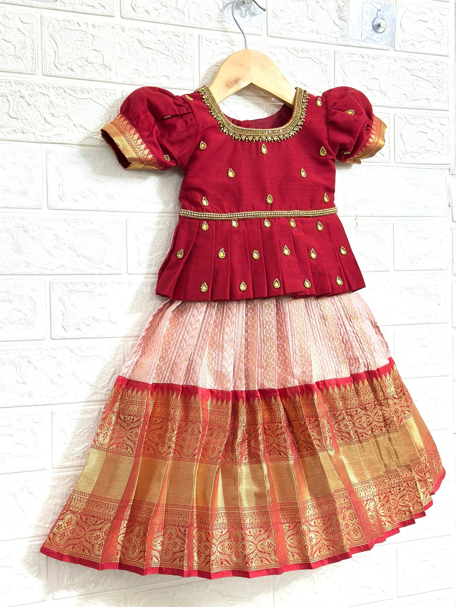 ✨ Elegant Kanejeevaram Lehenga with Maggam Work Peplum Blouse ✨