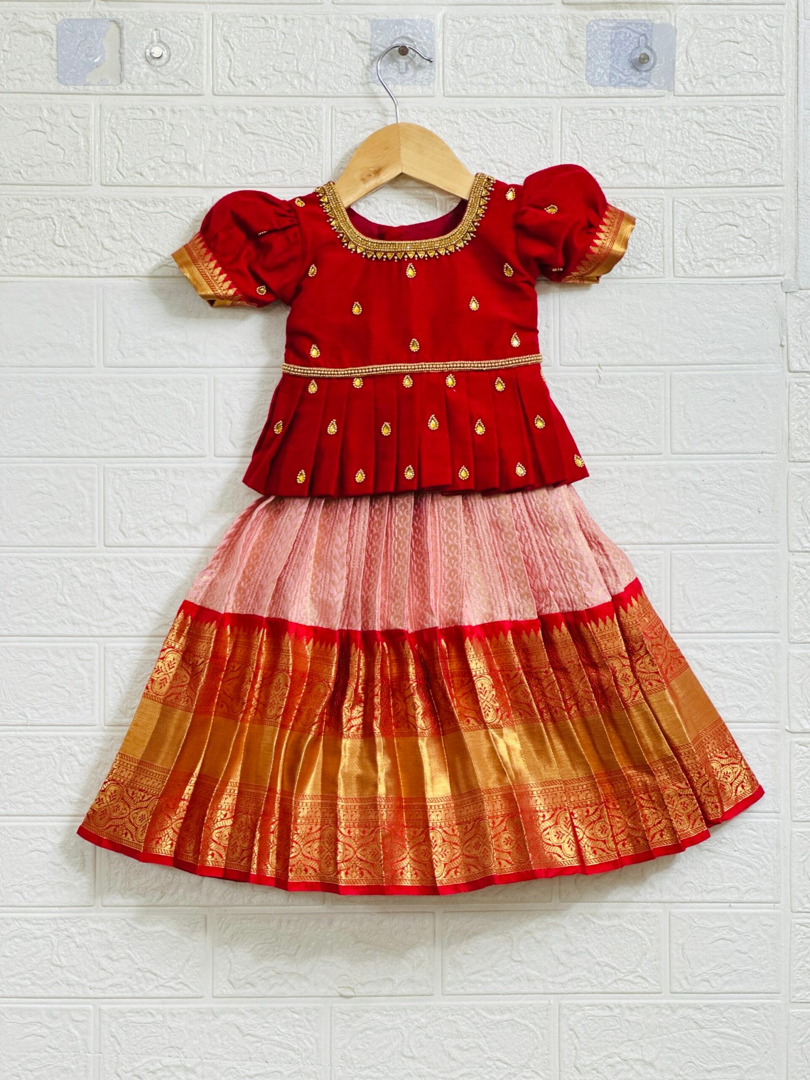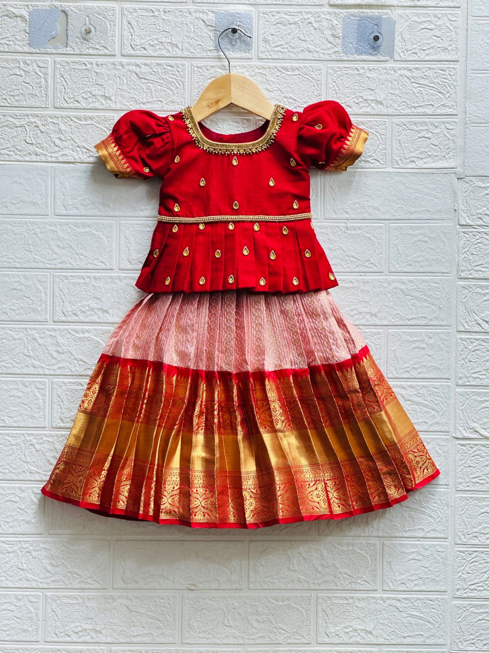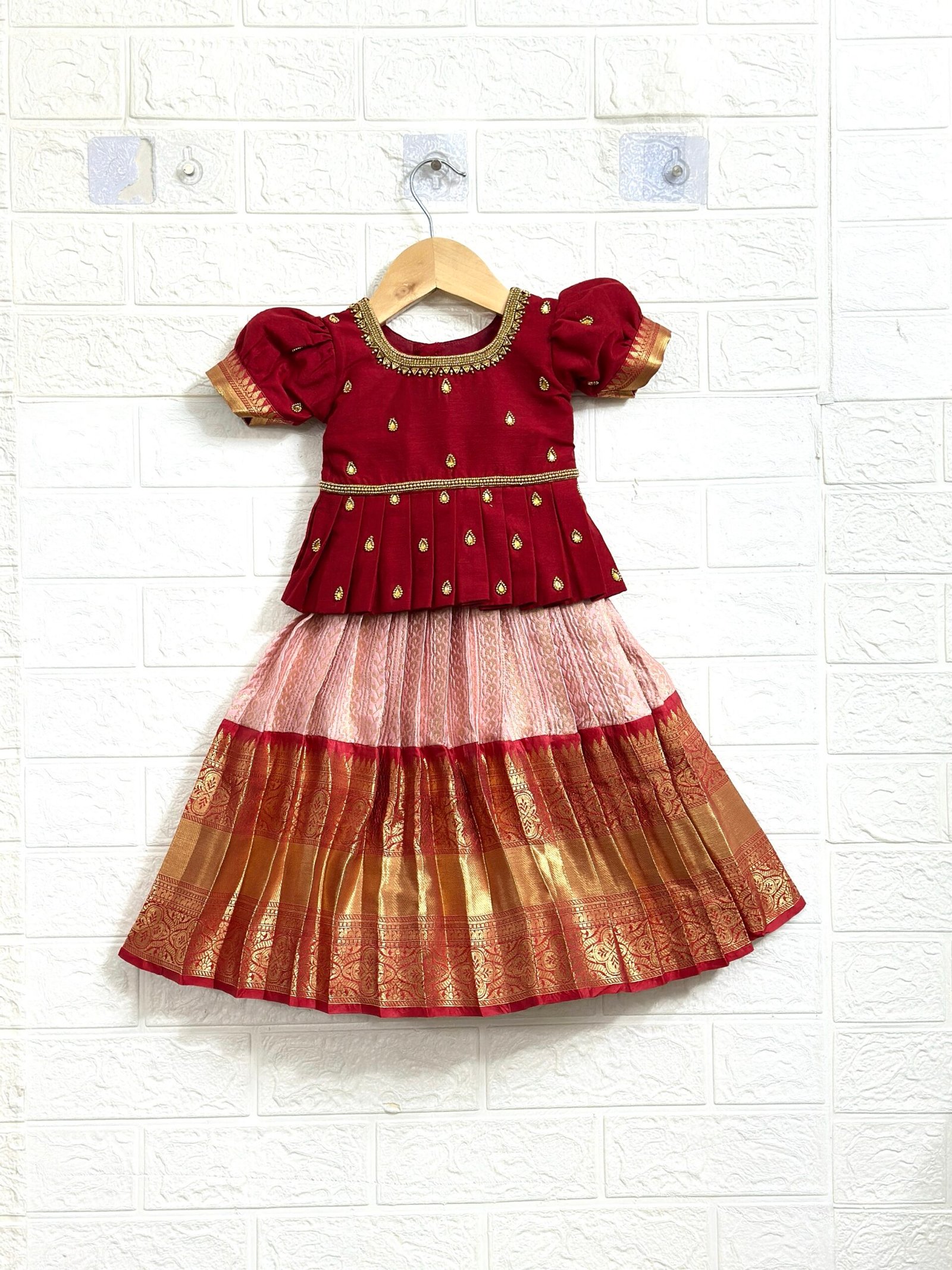 ✨ Elegant Kanejeevaram Lehenga with Maggam Work Peplum Blouse ✨