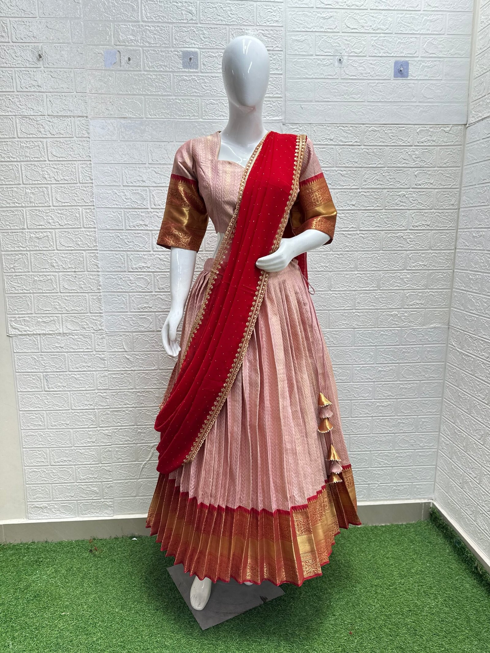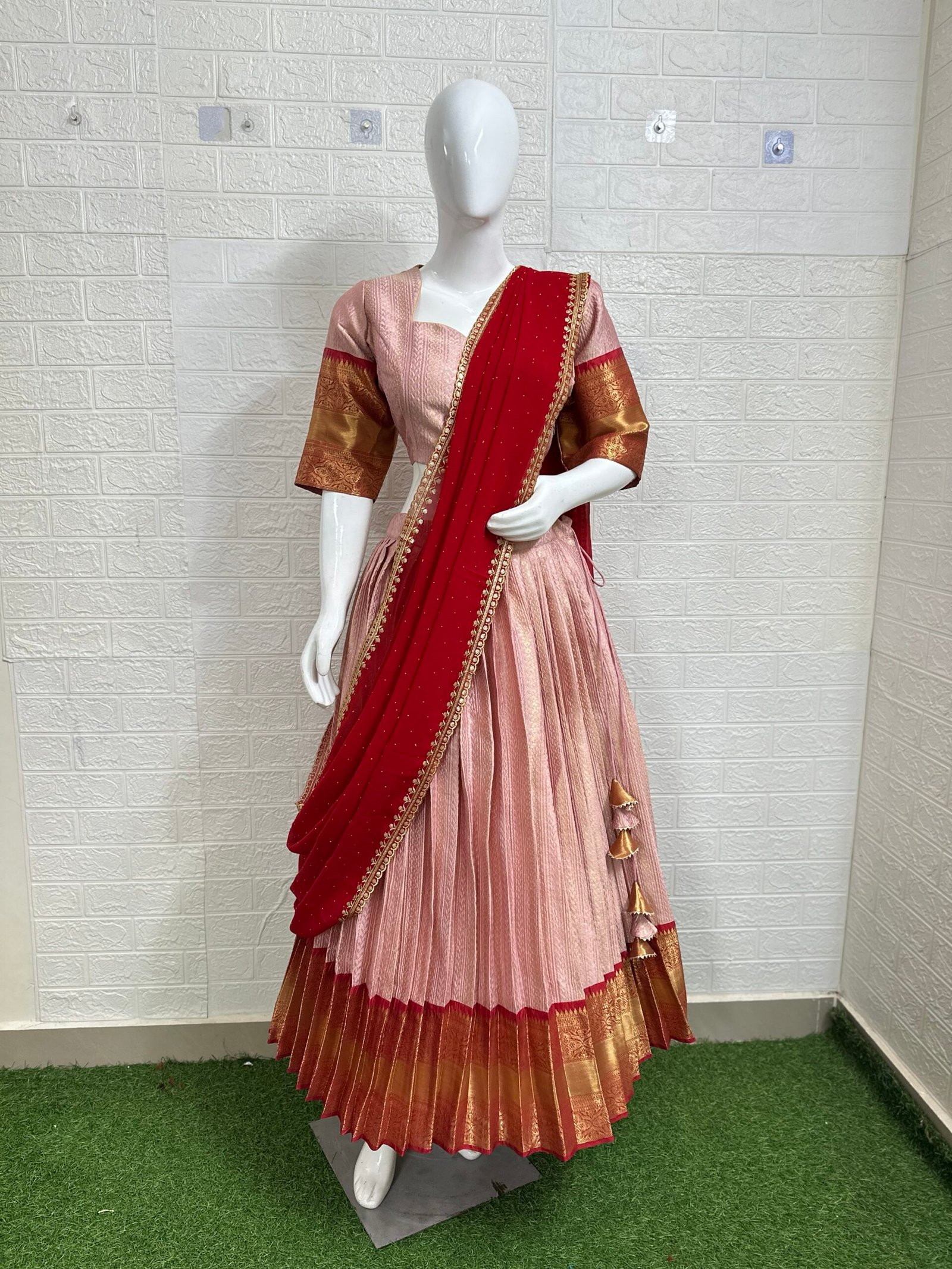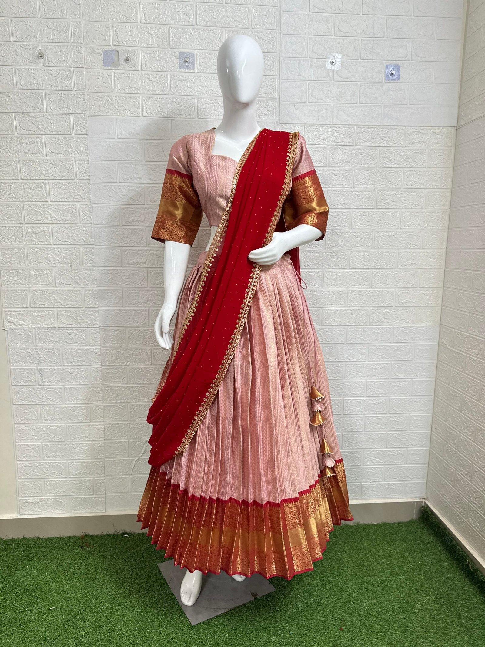 ✨ Best-Selling Semi Kanjeevaram Lehenga with Designer Blouse & Chinnon Dupatta ✨