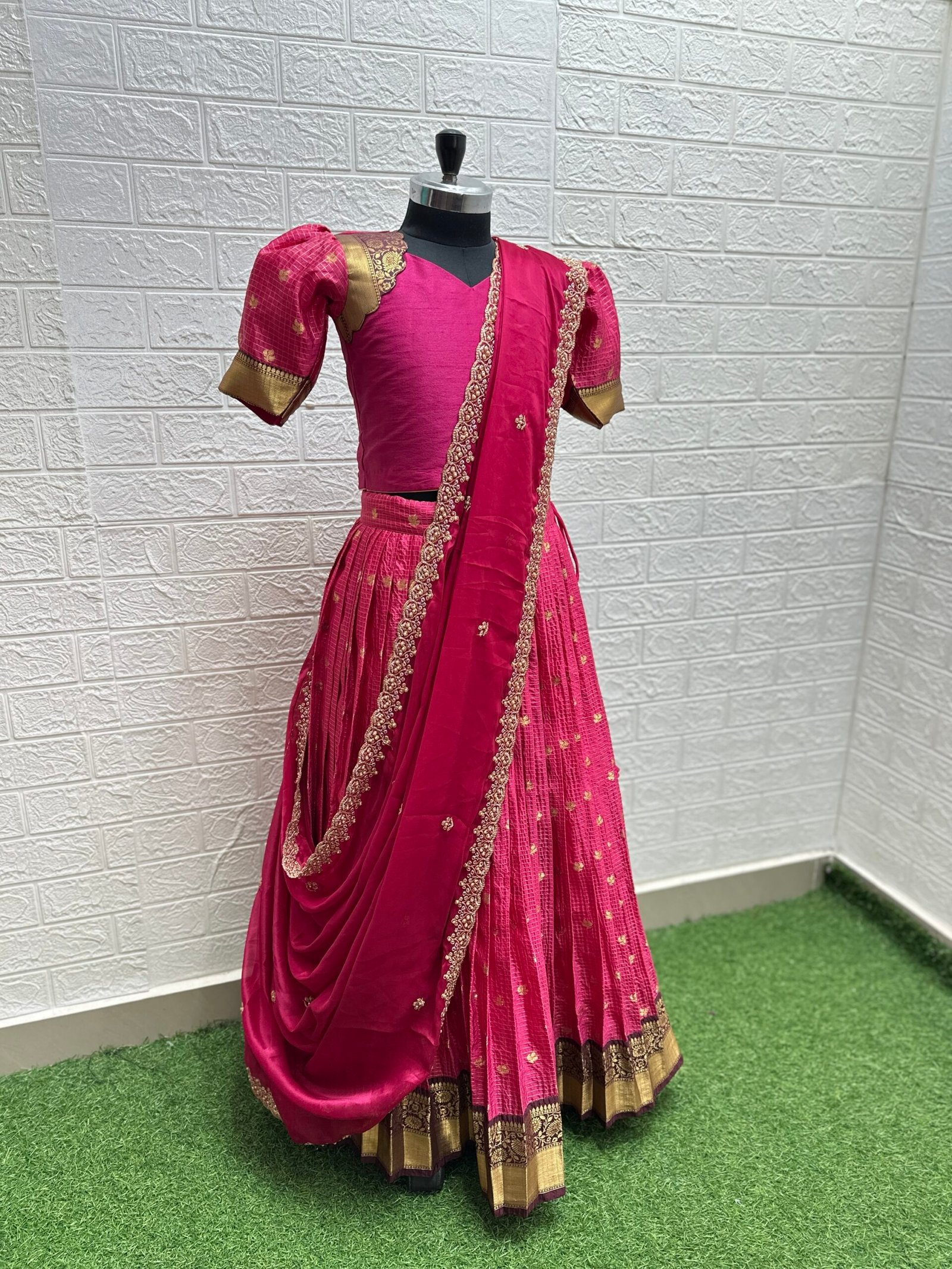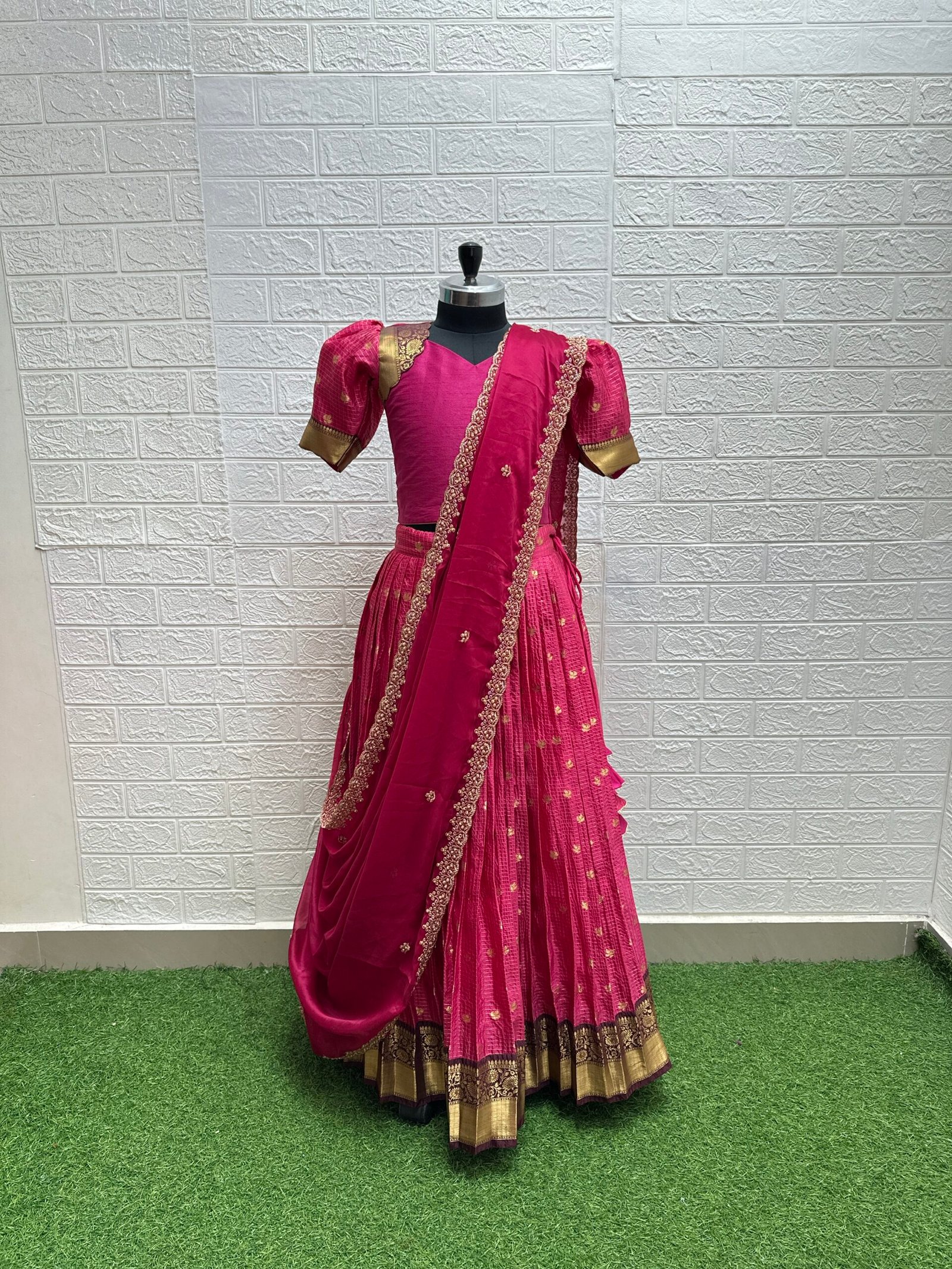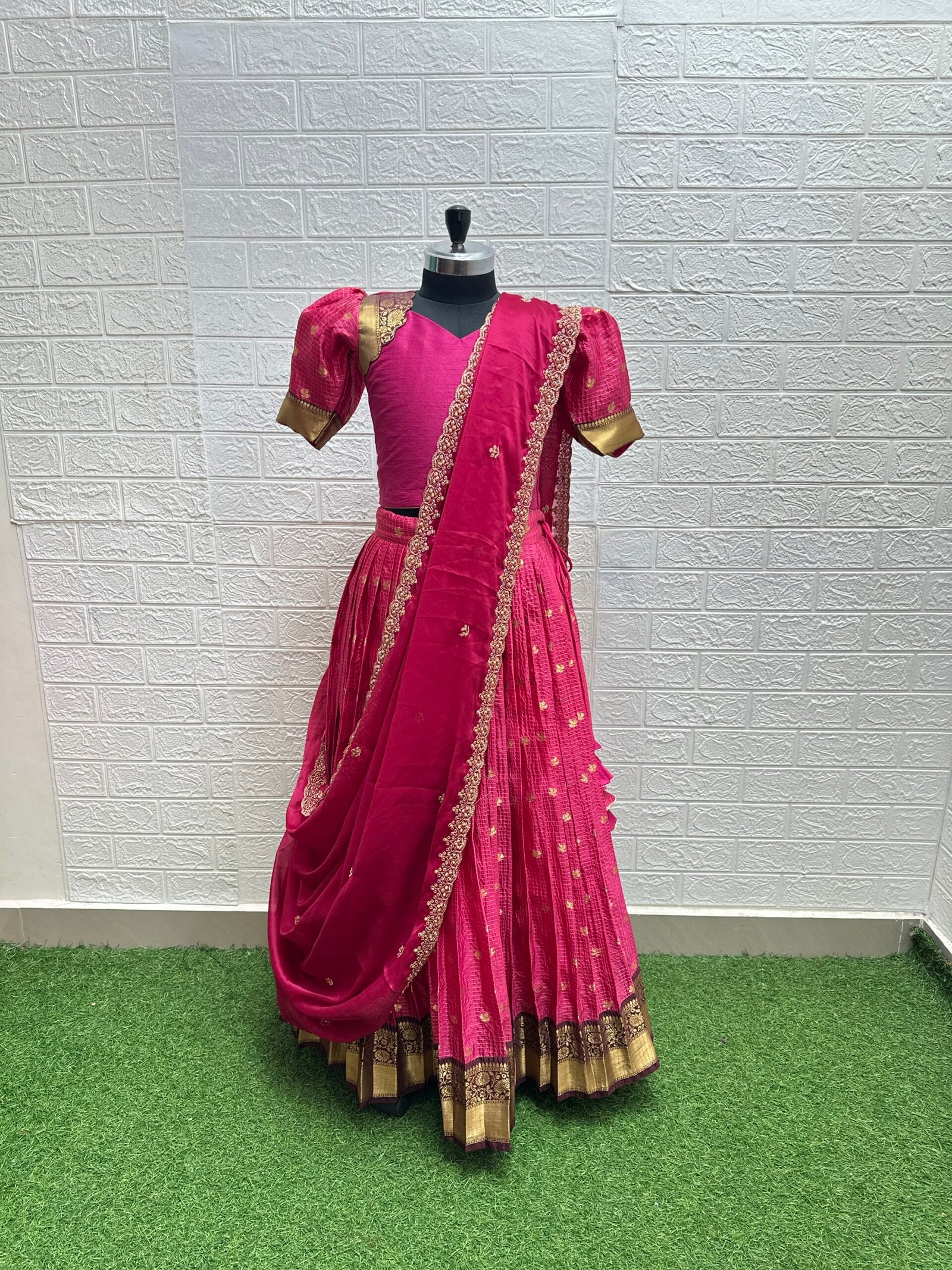 Lehenga: Semi Gadwal with graceful flare