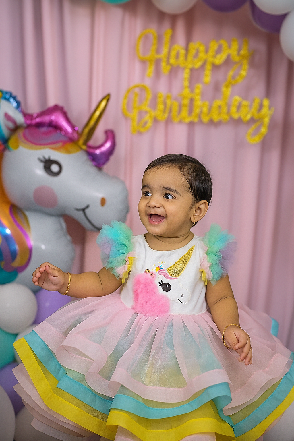 Make your little princess’s birthday truly unforgettable with our dreamy Unicorn Theme Frock 🦄💖. Designed with soft pastels, vibrant flair, and a touch of sparkle, this outfit is pure fairytale magic!