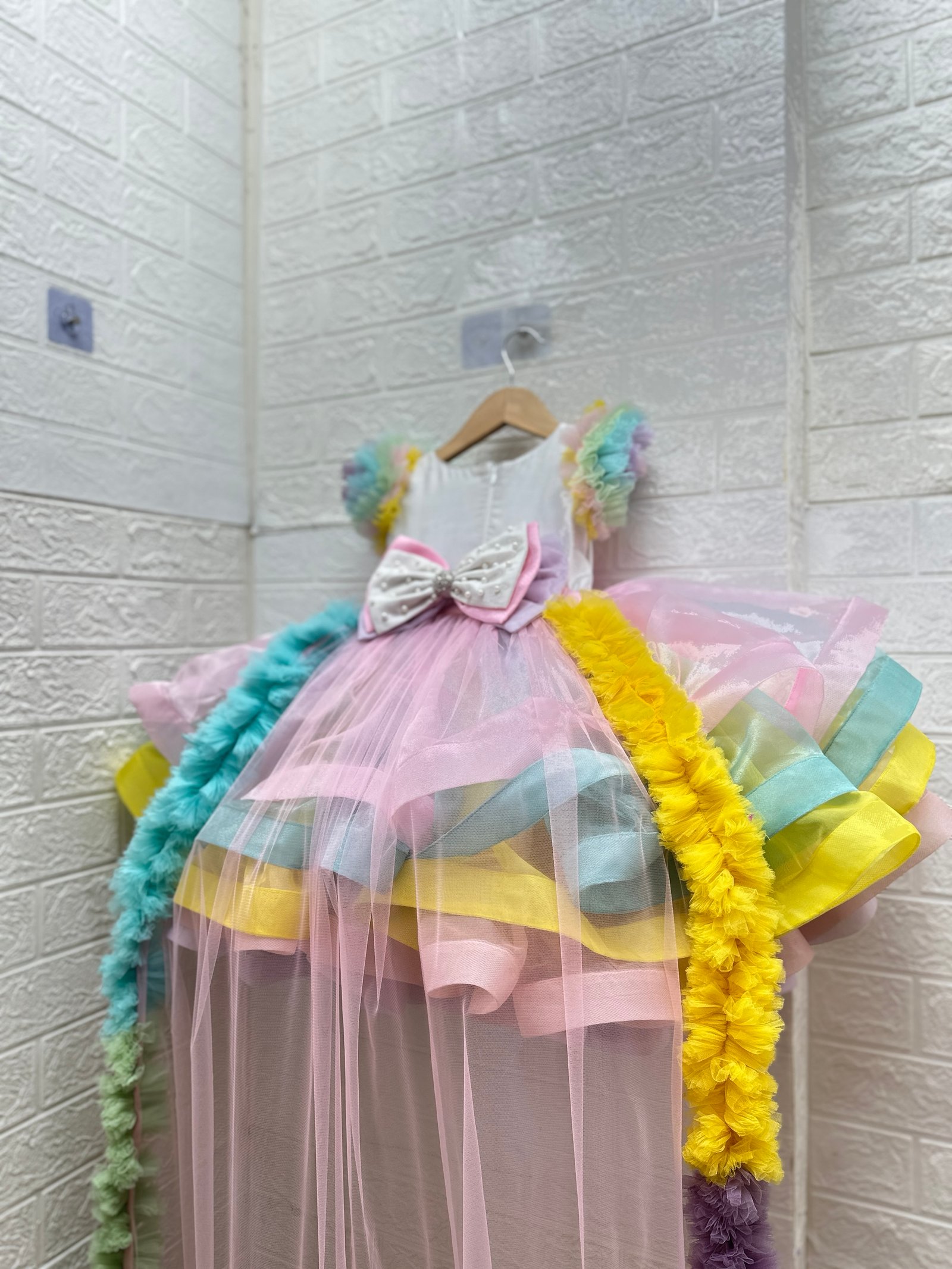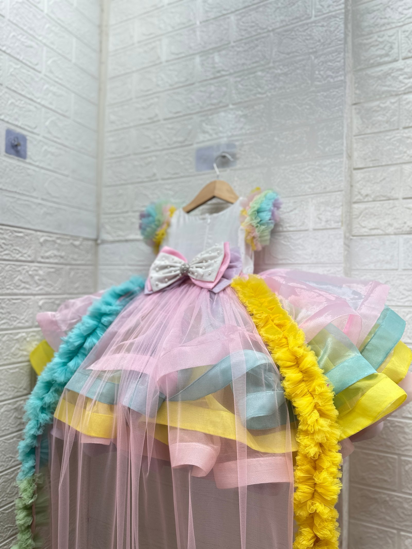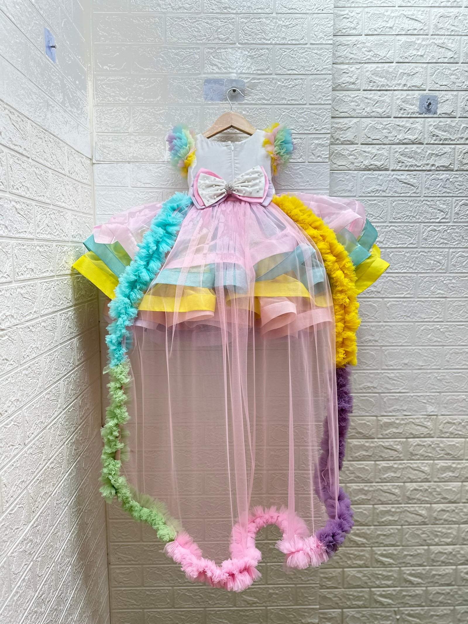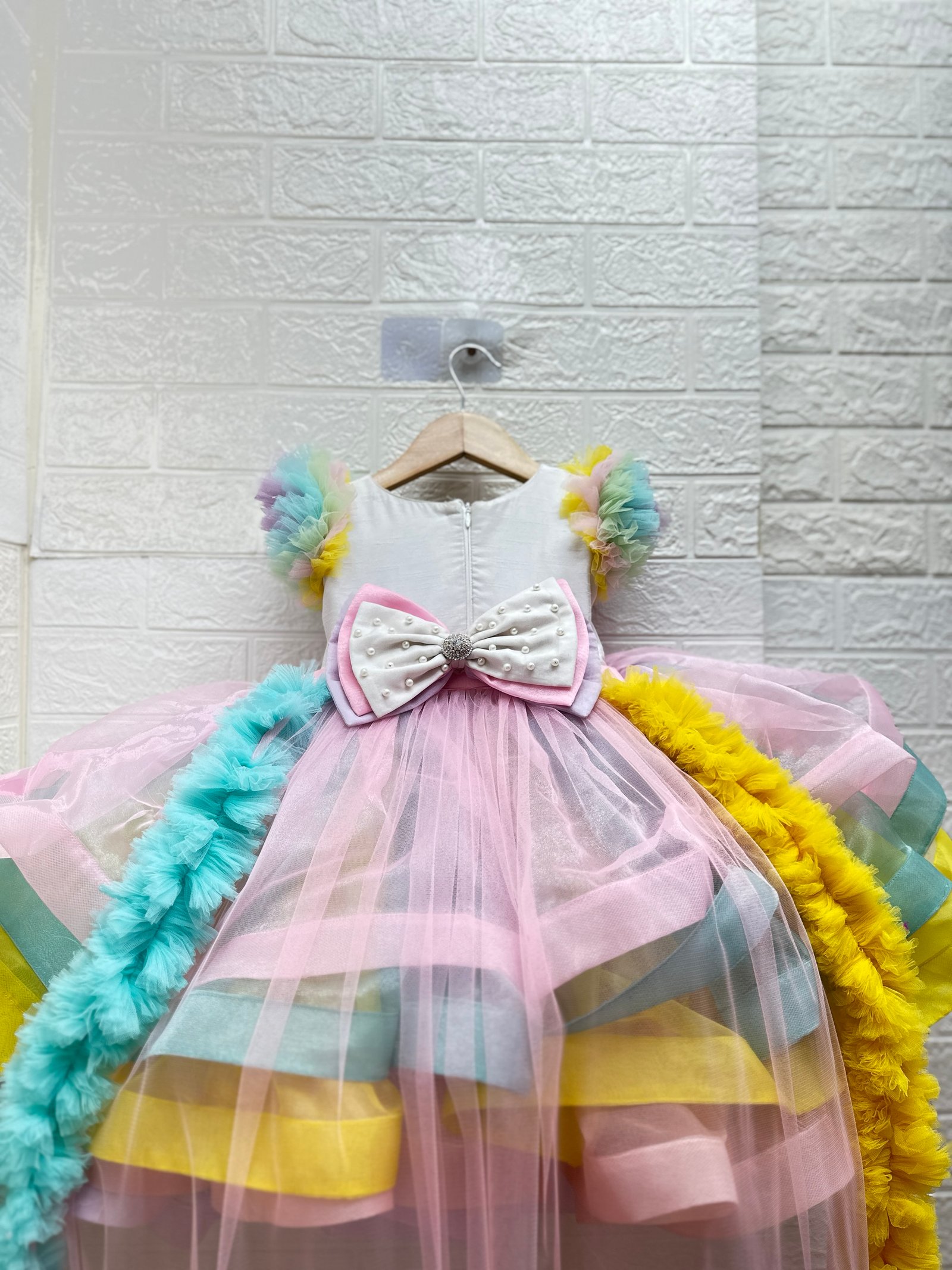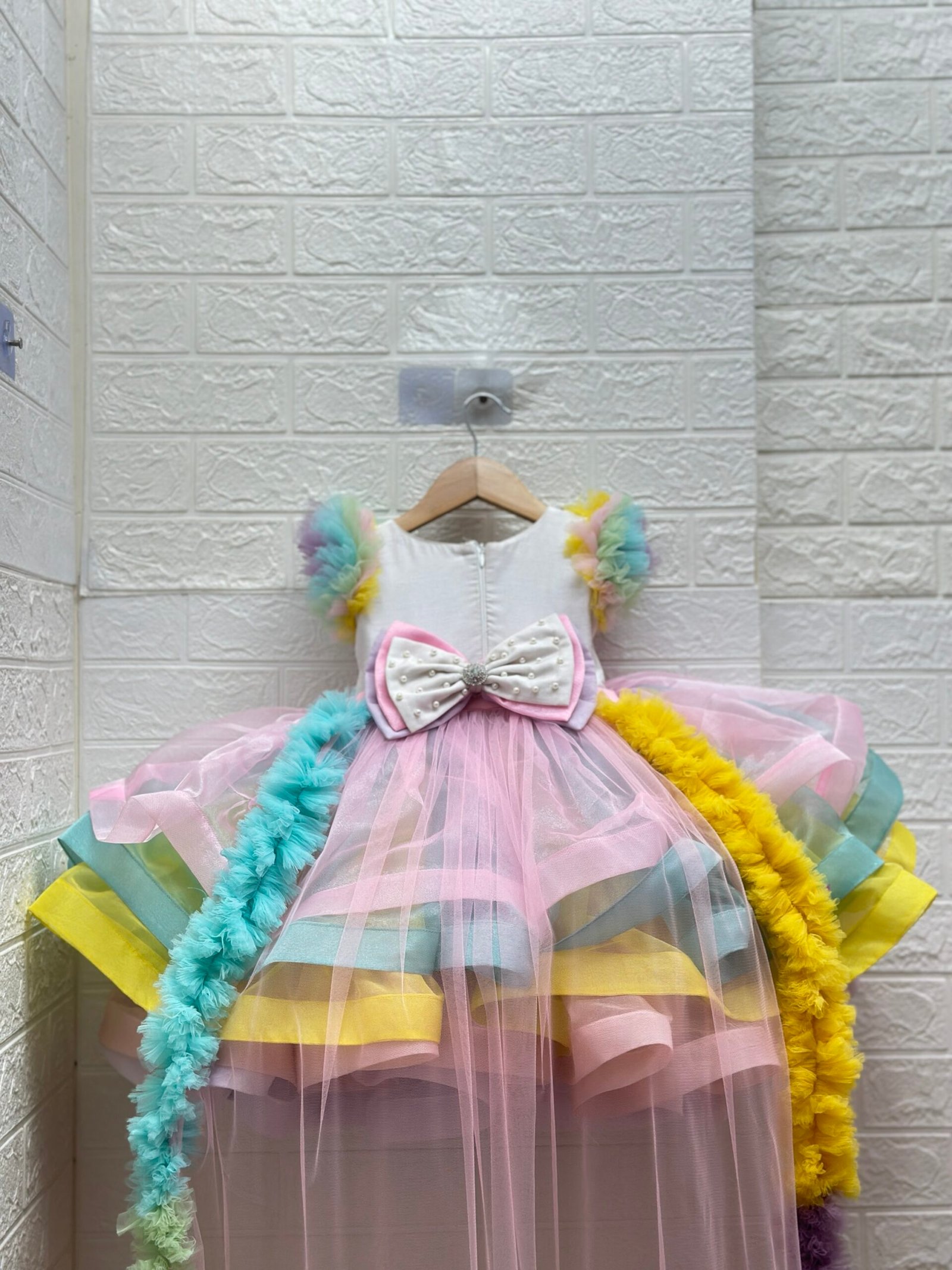 Elegant back bow & wale trail, giving the outfit a regal, fairytale-inspired look.