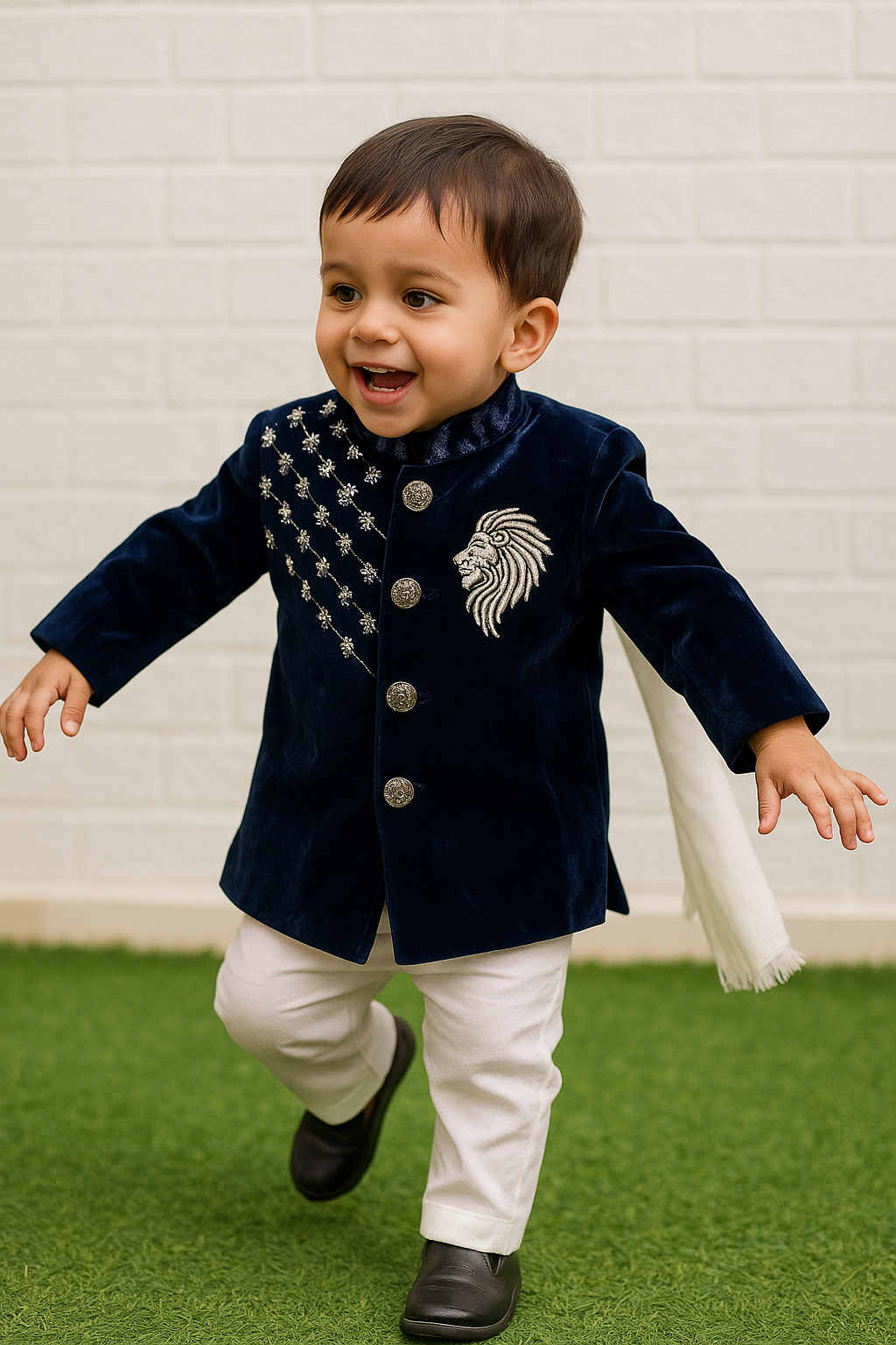 Make your prince the star of every celebration with this regal boys’ outfit, perfect for sangeets, weddings & festive occasions. Designed with a classy touch of tradition and modern elegance, this ensemble ensures your little one looks charming and feels comfortable all day.